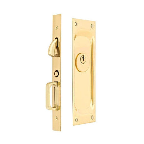 7 1/2 Inch Solid Brass Keyed Pocket Door Mortise Lock - this set is designed for a locking pocket door (such as a bathroom or study door). It is constructed from solid brass and measures 2 1/2 inches wide by 7 1/2 inches tall.