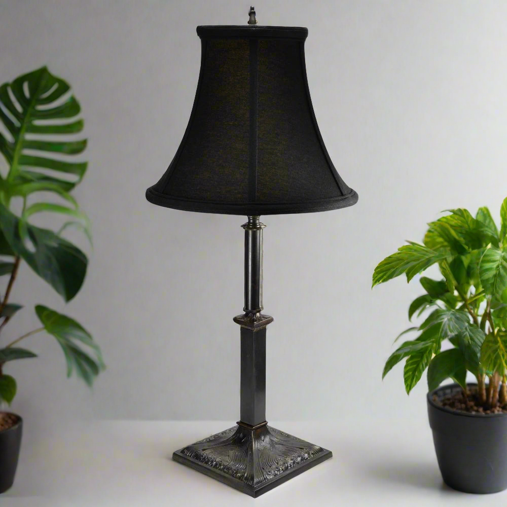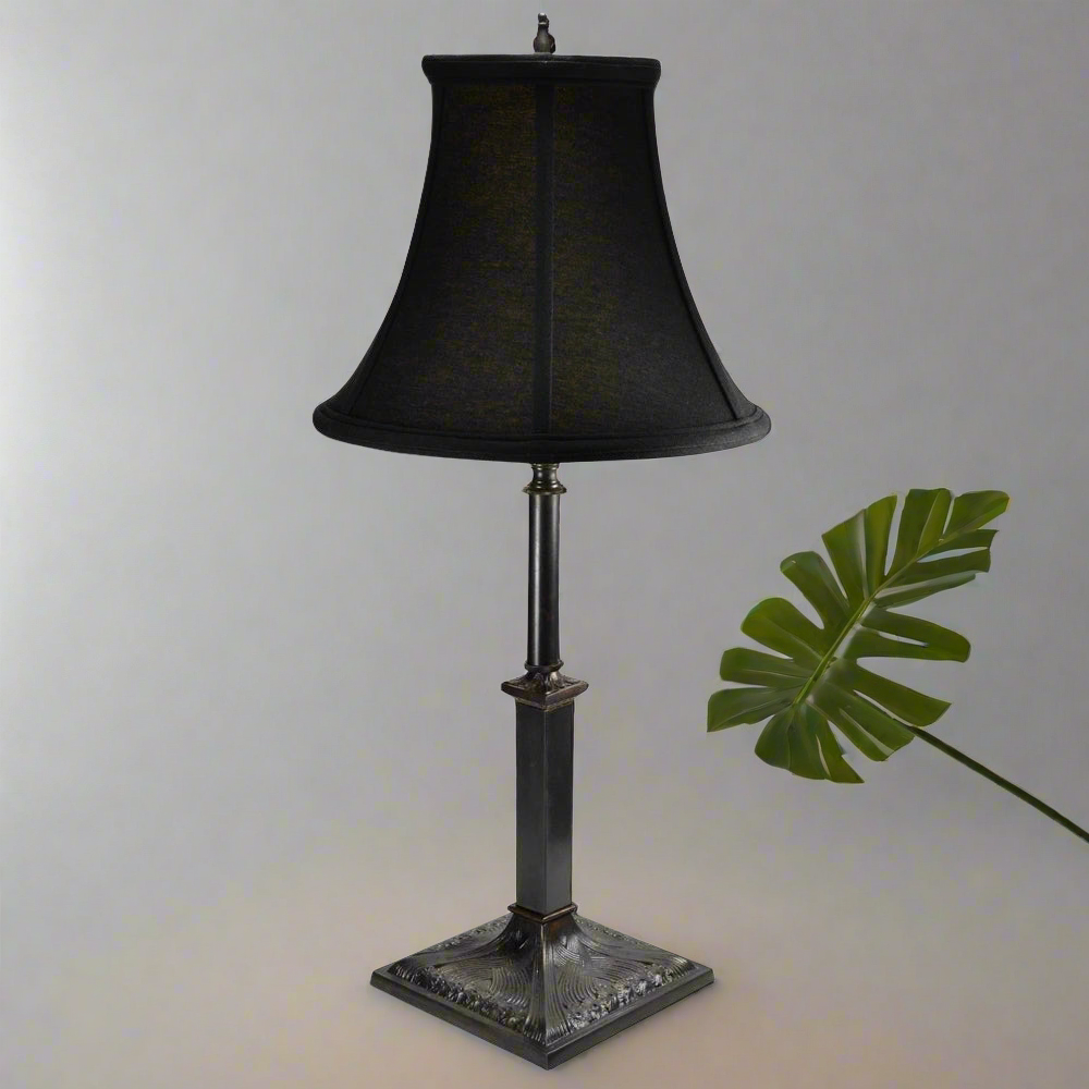 Standing at an approximate height of 22 inches, this lamp is a perfect addition to any sophisticated interior. Additionally, we offer a matching taller version, which comes with a larger shade to suit different decor needs. Please note that the white cloth shade shown in the image is not included; however, we provide a variety of shade options to complement this elegant lamp.