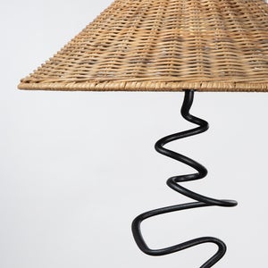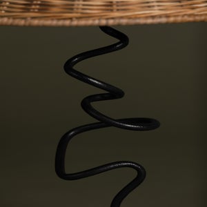 The Alaric Table Lamp by Troy Lighting showcases a stunning rattan shade, contributing a natural touch to any decor. With dimensions of 14.25 inches in width and 25.75 inches in height, this lamp requires a single E26 medium base bulb, with a recommended A15 bulb type, and has a maximum wattage of 8.00W. Finished in forged iron, this lamp is designed for indoor use and is not plug-in compatible, ensuring a sleek and seamless look in your space.