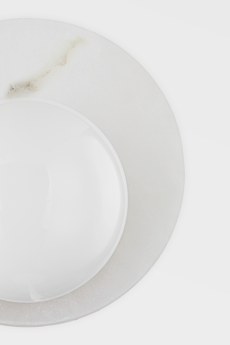 The Corbett Lighting Cobalt Wall Sconce features an elegant Opal Glossy Alabaster shade, making it a perfect addition to your decor. With a dimension of 10.50 inches in width and height, and an extension of 7.50 inches, it offers a well-proportioned design. This sconce accommodates one E26 medium base bulb, with a maximum wattage of 60W (bulb not included), ensuring ample illumination. Further enhancing its versatility, it is UL Damp rated, suitable for humid areas, and boasts a sophisticated Vintage Brass finish.
