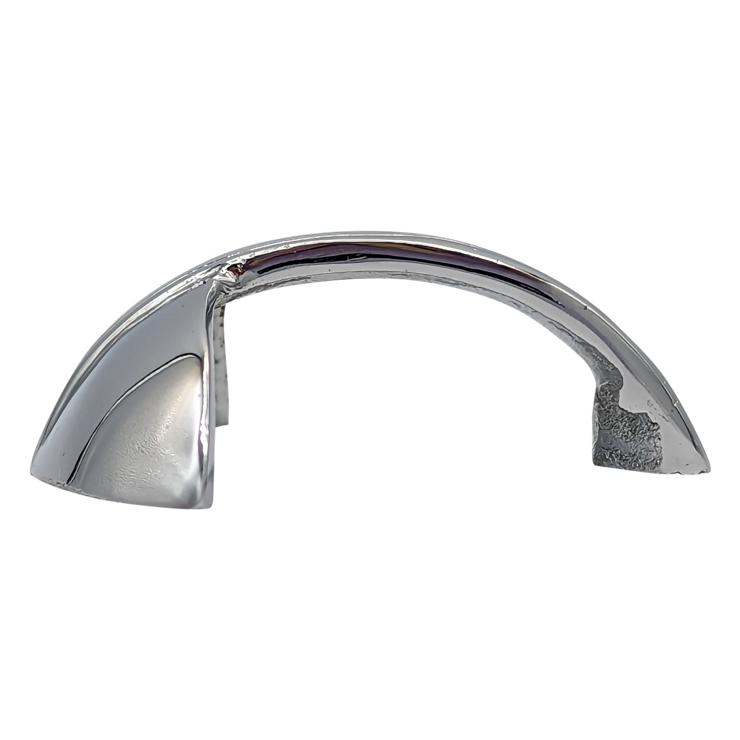 2 5/8 Inch Overall (2 Inch c-c) Solid Brass Art Deco Pull - each pull is constructed from solid brass and is finished by hand. Each pull measures 2 5/8 inch wide by 1 5/8 inch tall and can be mounted either upright or inverted. This product comes as an unlacquered natural brass and it will patina over time. A high strength lacquer coating is available upon request. This style of Cup Pull mounts with two machine screws (included) and it has a center-to-center mounting distance of 2 inches. This pull has graceful lines and coordinates well with our Art Deco Skyscraper line of products. Available in several different finishes.