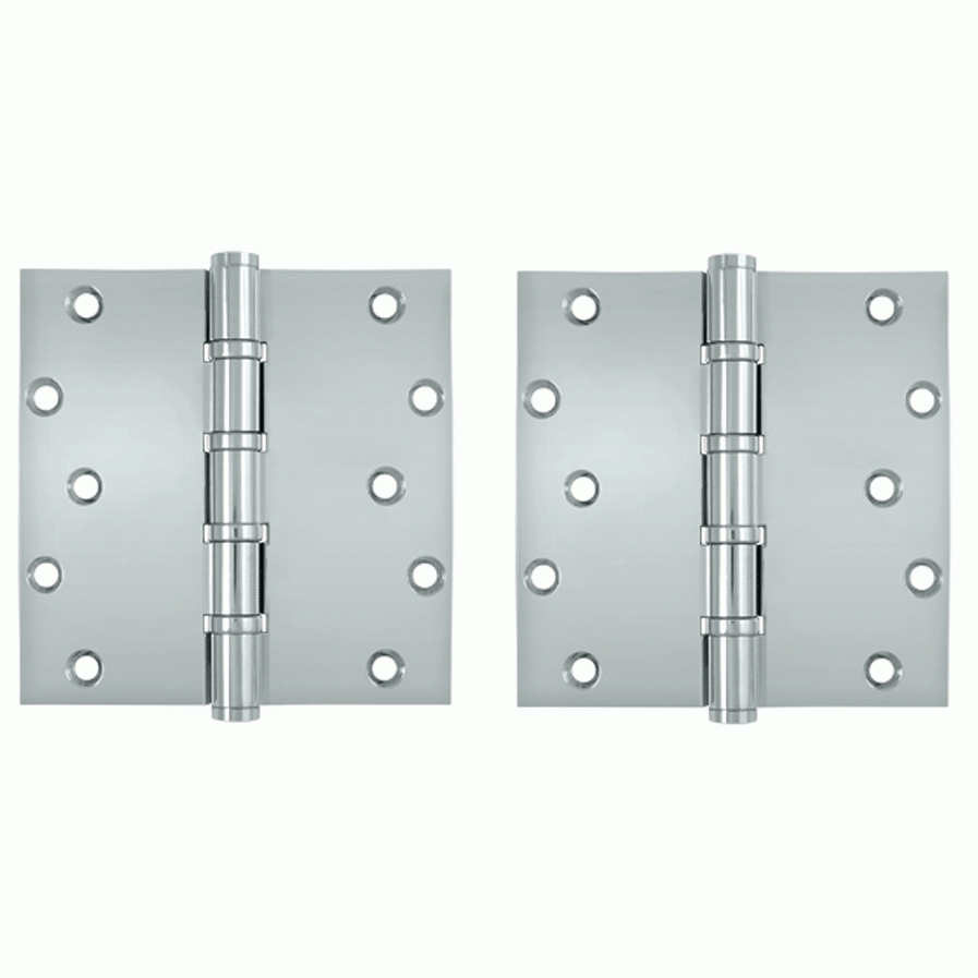 6 Inch X 6 Inch Solid Brass Ball Bearing Square Hinge (Chrome Finish)